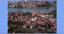 ebenfalls mit einem pfeilerlosen Mittelstück neu erstehen. Schön zu sehen, die "Nixe", welche als Fähre beide Ufer in dieser