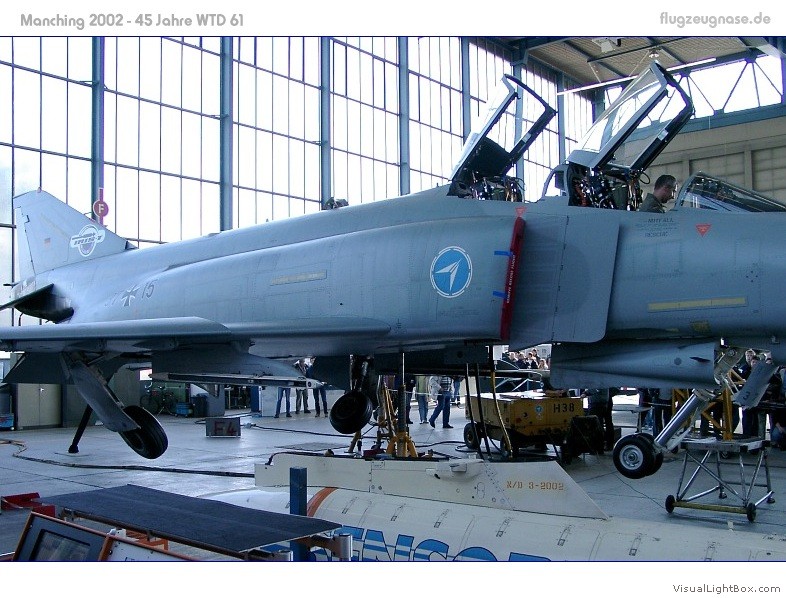 aufgebockten F-4 Phantom in der großen Werfthalle.